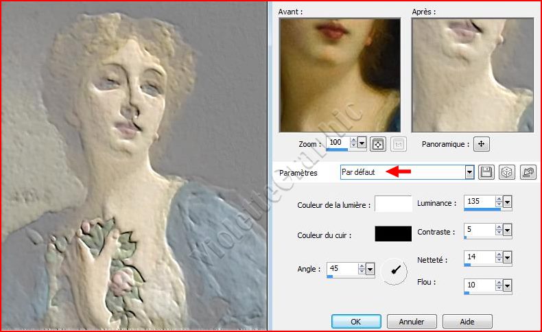 2 - Activer votre image ** Effets/Effets Textures/Cuir brut réglages par défaut :