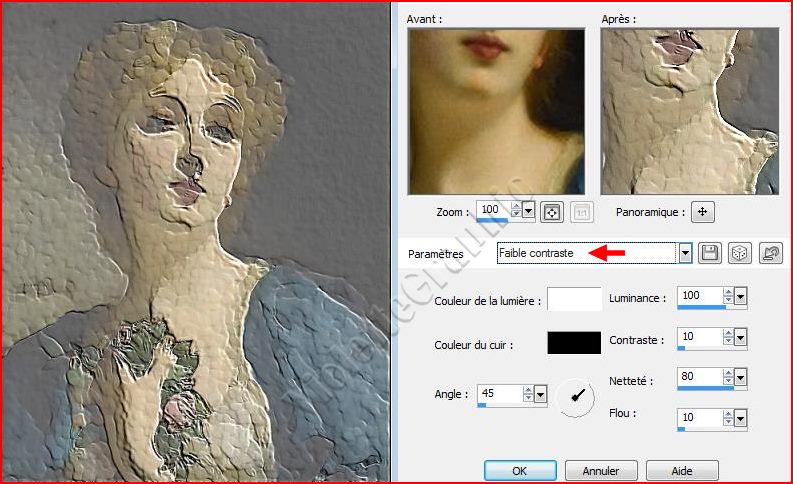 4 - Effets/Effets Textures/Cuir brut réglages : Faible contraste