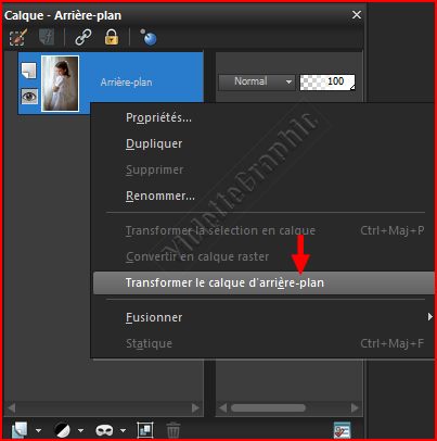 Vous ne pouvez pas modifier son ordre d’empilement à moins que vous ne le transformiez en calque raster Pour le transformer/ clic droit sur le calque d'arrière-plan/ Transformer le calque d'arrière-plan