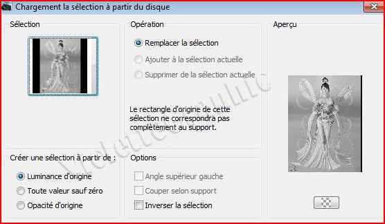11 - Calques/Nouveau calque ** sélection/Charger/Enregistrer une sélection/Charger à partir du disque choisir la sélection_ image.PspSelection