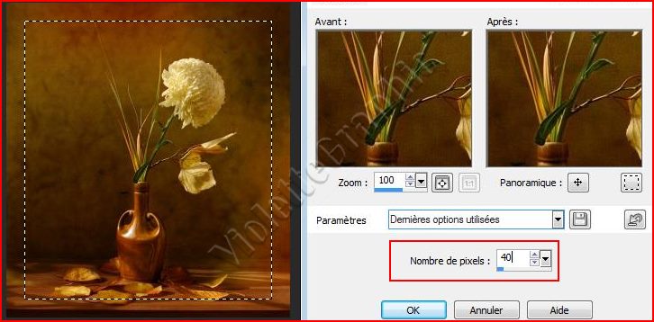 7 - Sélection/modifier/Agrandir de 20 pixels la sélection est agrandie