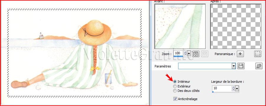 les bords de la sélection s'agrandissent de 10 pixels à l'intérieur de la sélection