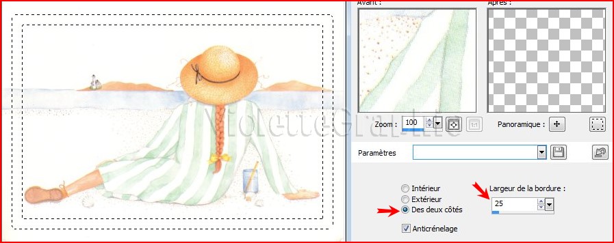 la sélection s'agrandit de 25 pixels à l'intérieur et à l'extérieur de la sélection