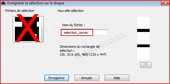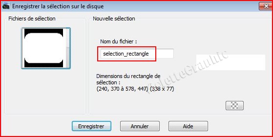 8 - Sélection/Charger/Enregistrer une sélection/Charger sur le disque **dans la boîte de dialogue qui s'ouvre nommer votre sélection : selection _rectangle