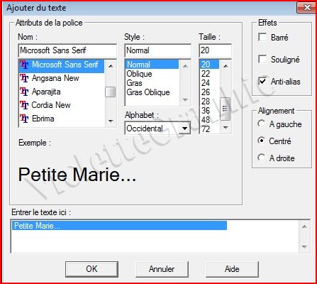 entrer votre texte en choisissant la Police, le style , la taille , l'alignement du texte clic sur OK