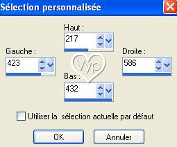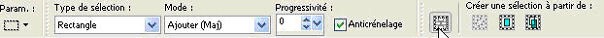 4 – Activer le tube des hérons/Edition/Copier/Edition/Coller 5 - Image/Redimensionner/80%/ case « tous les calques » décochée Placer en haut à gauche de la représentation 6 - Dupliquer Descendre dans le coin inférieur droit 7 –Calque/Nouveau/Sélectionner l’outil sélection standart/cliquer sur l’icône sélection personnalisée