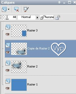 11 – Activer le calque 3 /Changer le Mode du calque pour Lumière dure/Opacité à 60% 12 - Fermer le calque 1, 2 et la copie du 2/Fusionner les calques visibles 13 – Effets/Xero/Porcelain 14 – Effets/Effets 3D/Ombre Portée : 1/1/50/1/noir/refaire avec –1 15 – Calques/Dupliquer/Image/Miroir/ placer dans le coin inférieur gauche