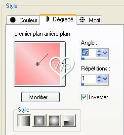 4 – Calques/Nouveau calque/Remplir de dégradé linéaire angle 45° répétition1 case inverser cochée