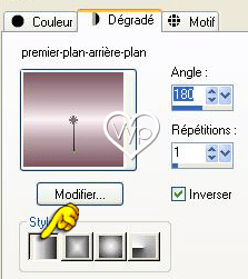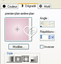 17 - Remplir de dégradé linéaire angle 180° répétitions 1 case inverser cochée Couleur avant-plan #fef2f5 et arrière-plan couleur #7b5560