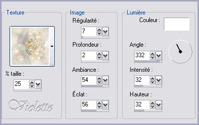 3 - Effets/Effets de Textures /Textile réglages suivants :