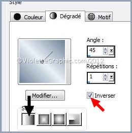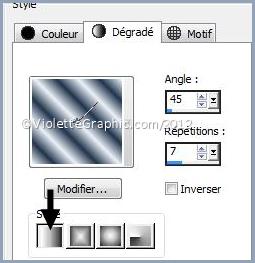 linéaire angle: 45°/Répétition: 1/ inverser coché
