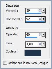 - Effets/Effets 3D/Ombre Portée : 59/92 /60/1/couleur #21344c