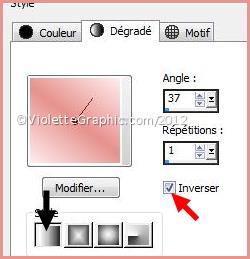 linéaire angle: 37°/Répétition: 1/Inverser coché