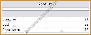 - Effets/Unlimited/Special Effets/Aged Film réglages suivants :
