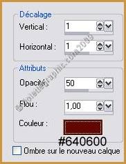 Effets/Effets 3D/Ombre Portée : 1/1/50/1/couleur #640600