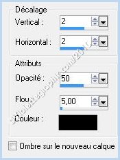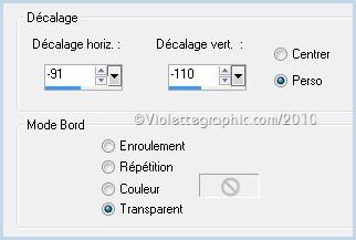 Réglages/Flou/Flou de mouvement réglages suivants :