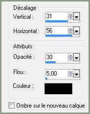 **Effets/Effets 3D/Ombre Portée : 31/56/30/5/couleur