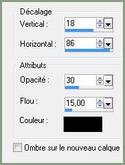 **Effets/Effets 3D/Ombre Portée : 18/86/30/15/couleur