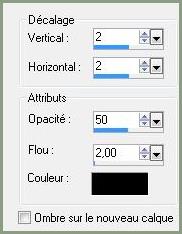 **Effets/Effets 3D/Ombre Portée : 2/2/50/2/couleur