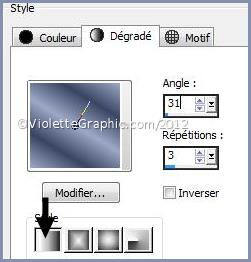 linéaire angle: 31°/Répétitions : 3/Inverser non coché