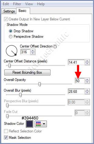 Onglet Basic : opacité à 50 /couleur