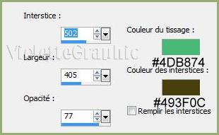 color ) réglages suivants :