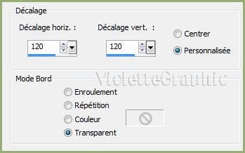 **Effets/Effets d'image/décalage réglages suivants: