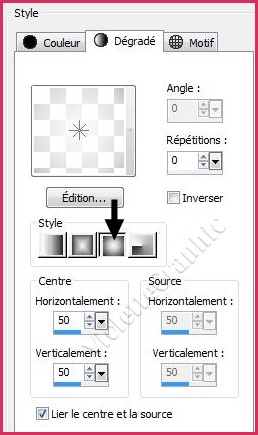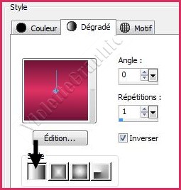linéaire angle: 0°/Répétition: 1/Inverser coché