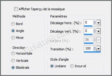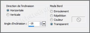 linéaire/ angle: 30/ Répétition : 1/ inverser cocher
