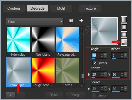 radial angle: 90°/Répétitions: 7/Inverser coché