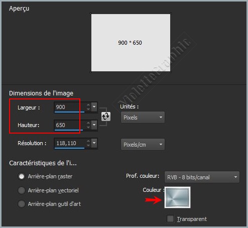 - Fichier/Nouvelle image et choisissez immédiatement le dégradé