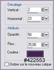 Effets/Effets 3D/Ombre Portée : 1/1/50/1/noir