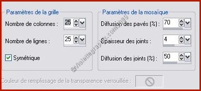 9 - Effets/Effets de Textures/Mosaïque Antique réglages suivants :