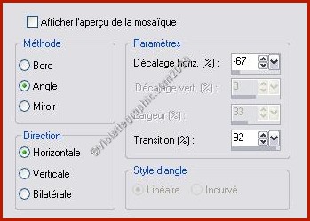 19 - Effets/Effets d'image/Mosaïque sans jointure réglages suivants: