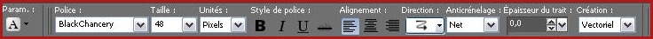 37 - Se placer sur la copie: Effets/Alien Skin Eye Candy Impact /Perspective Shadow: Drop Shadow ,Blurry Preset Vyp_shadow_Noel01.f1s 38 - Activer l'outil Texte/Police BlackChancery/ Taille : 48/Vectoriel avant-plan fermé/Motif or en arrière-plan