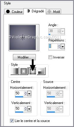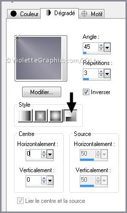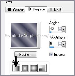 linéaire angle: 45°/Répétitions: 5/Inverser coché