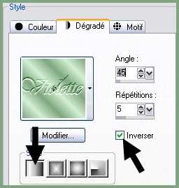 linéaire : 45°/Répétitions : 5/Inverser coché