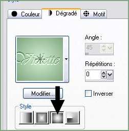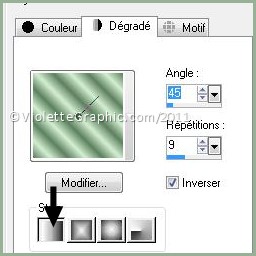 linéaire : 45°/Répétitions : 9/Inverser coché