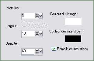 réglages suivants :