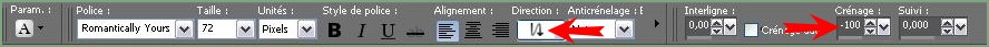 Direction: vertical et vers la droite / Crénage : -100