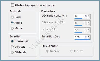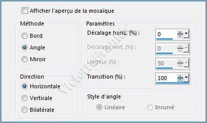 **Effets/Effets d'image/Mosaïque sans jointure réglages suivants: