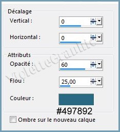 Effets/Effets 3D/Ombre Portée : 0/0/60/25/couleur #497892