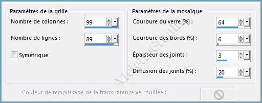 Effets/Effets de Textures/Mosaïque de verre réglages suivants :