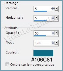 Effets/Effets 3D/Ombre Portée : 5/5/50/1/couleur #106c81