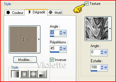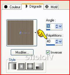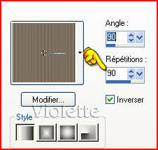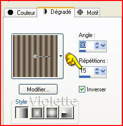 2 - Configurer un dégradé linéaire avant-plan angle 90° répétitions : 90