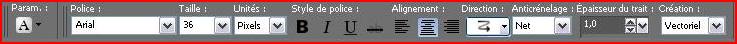 2 - Activer votre outil texte configuré ainsi /Police Arial/taille : 28 ( ou à votre goût ) /Couleur foncée