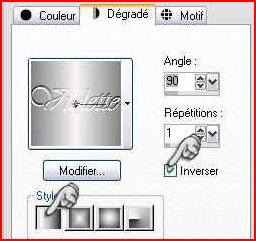 Configuré un dégradé linéaire angle:90° / répétition: 1/ inverser coché