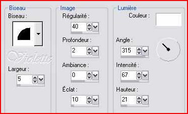 7 - Effets/Alien skin/Eye Candy 5 Impact/Bevel : par défaut