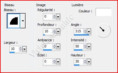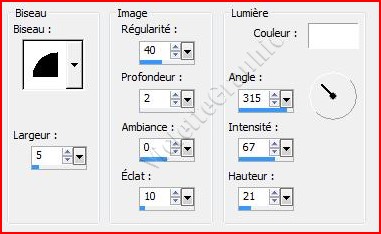 ** Effets/Effets 3D/Biseautage intérieur réglages suivants :