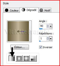 Configurer un dégradé linéaire angle: 90°/Répétition: 1/Inverser coché